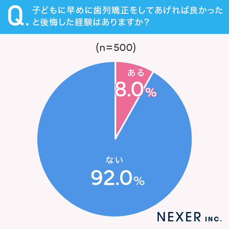 8%が、子どもに早めに歯列矯正をしてあげれば良かったと後悔した経験が「ある」