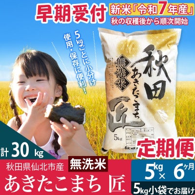 無洗米5kg 令和7年産 新米 早期受付定期便6回 あきたこまち5kg