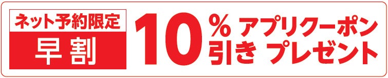 ※アプリクーポンは早割期間中のネット予約で1個ご予約ごとに1枚配信となります。