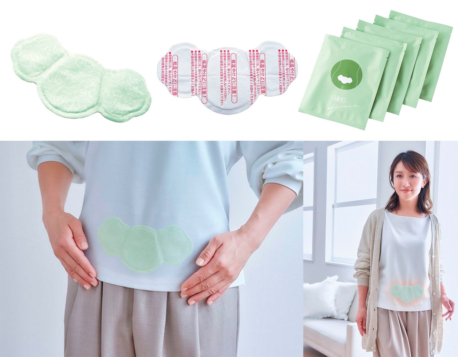お腹部分に貼ってあたためめぐる温熱メソッド「よもぎ温熱メソッド お腹用」