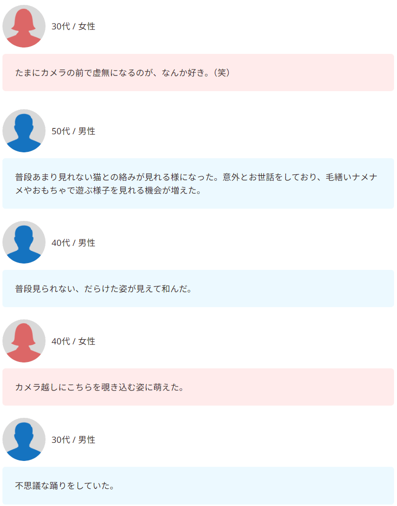 ペットカメラによって「普段は見られない姿を確認できた」という声も少なくありません。