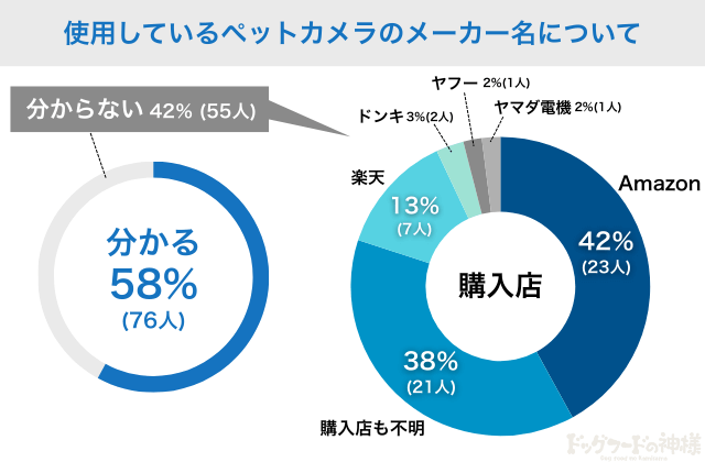 ペットカメラのメーカー名を把握している飼い主さんは58%にとどまり、42%は「分からない」と回答しました。