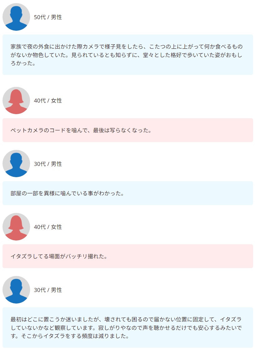ペットカメラで、こたつを物色したりコードを噛んだりする“イタズラ現場”が確認されたという声も寄せられました。