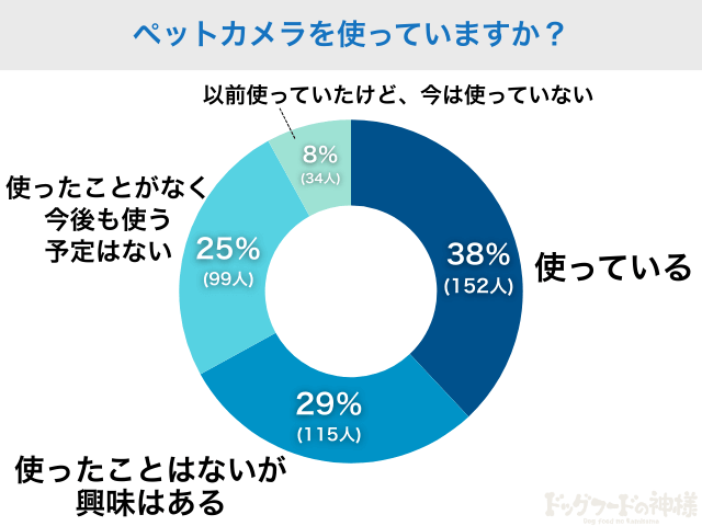 ペットカメラを利用している飼い主さんは38%にのぼり、一定の普及がうかがえます。