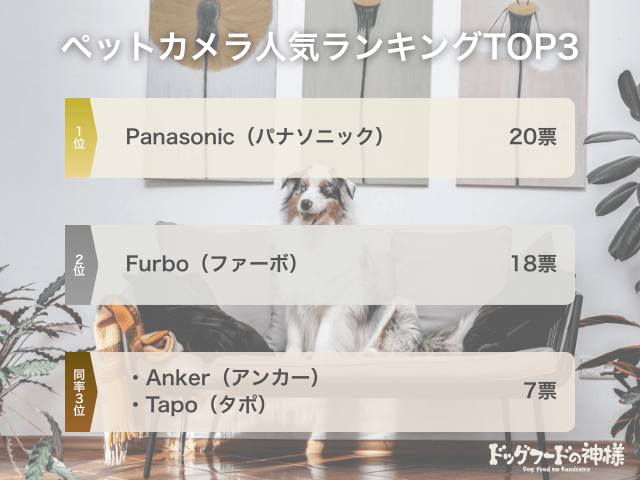 - ペットカメラの人気No.1はパナソニック。Furbo、Anker、Tapoも上位にランクイン。
